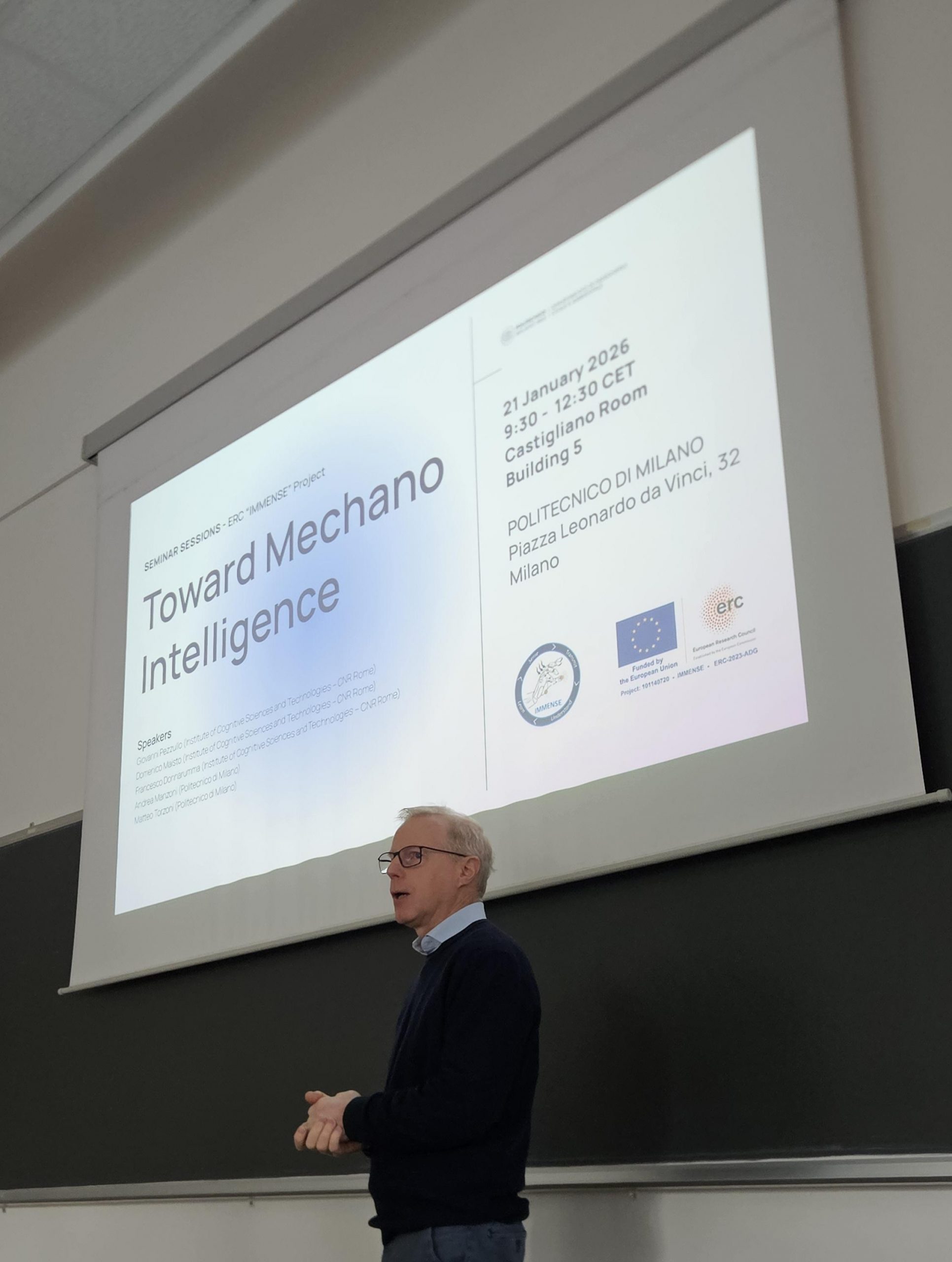 In January 2026, we had the pleasure of organizing the seminar session “Toward Mechano Intelligence”, which led to a truly insightful discussion with our invited speakers from the Institute of Cognitive Sciences and Technologies (CNR) of Rome.